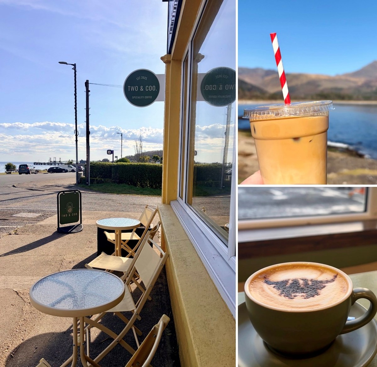 Enjoy a brew with a view at this speciality coffee shop in Brodick. Two & Coo is a delightful dog-friendly coffee shop at Invercloy Corner, ovrlooking Brodick Bay and Goatfell. An ideal stop for a light bite, lunch or just a coffee to keep you going. Sit in or take away. Amazing array of freshly made delicious sandos and home baking.