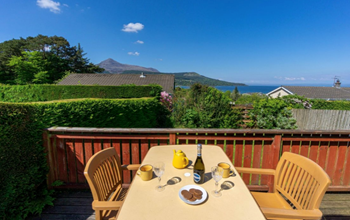 Goatfell View Annexe is in a quiet, elevated position close to all Brodick village amenities. It has panoramic views over Brodick Bay to Goatfell, Brodick Castle and across to Isle of Bute, the Cumbraes, Millport and the mainland. Our decked area at the front of property overlooks these views and has a table and chairs for outdoor use. Goatfell View gardens are separate from the main house next door. The south garden at rear of property has relaxing garden furniture and gets the sun all day.