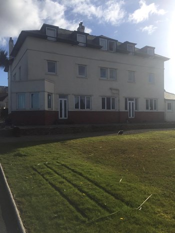 The Shorehouse is situated on the Brodick shore front and is approximately 545 yards (500 m) from Brodick Pier. The main shopping centre for the Isle of Arran is a few minutes walk from the accommodation and the beach and children's play area are situated nearby. The Shorehouse was originally built as first class hotel accommodation on the Brodick seafront in the 1930s. This was due to its commanding view of Goatfell, Brodick Bay and the islands and mountains beyond. From the end of the front lawn to the shoreline is literally 22 yards (20 m), which has got to be the proverbial 'stones throw' in anyone's book. The Shorehouse has been reformed into ten self contained one and two bedroom apartments. It offers the unique combination of good quality self catering accommodation within a sea front property in the island's principle town of Brodick. There are parking facilities on the grounds.